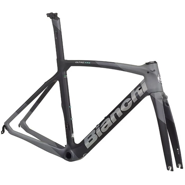 Cadre : Oltre XR4 carbon w/Bianchi CV, mechanical/electronic shifting compatible, headset 1.5″, PressFit 86,5x41mm BB, Disc brake internal cable routing, flat mount calipers, thru axle 12x142mm, sizes 47-50-53-55-57-59-61cm