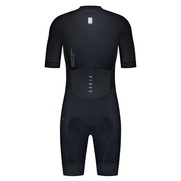 Poids0.100000 MarqueGobik CouleurNoir DisciplineRoute Longueur des ManchesCourtes Longueur du ZipIntégral Régulation Thermique>13° Résistance à la PluieDéperlant < 1h Type de HautMaillots