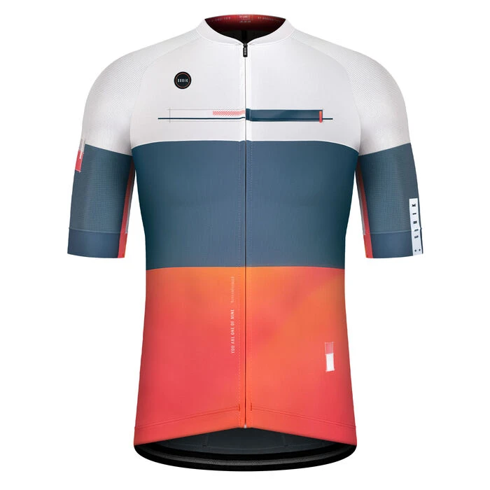 Poids0.110000 MarqueGobik CouleurBlanc / Orange DisciplineRoute, Vtt Longueur des ManchesCourtes Longueur du ZipIntégral Régulation Thermique>13° Résistance à la PluieDéperlant < 1h Type de HautMaillots