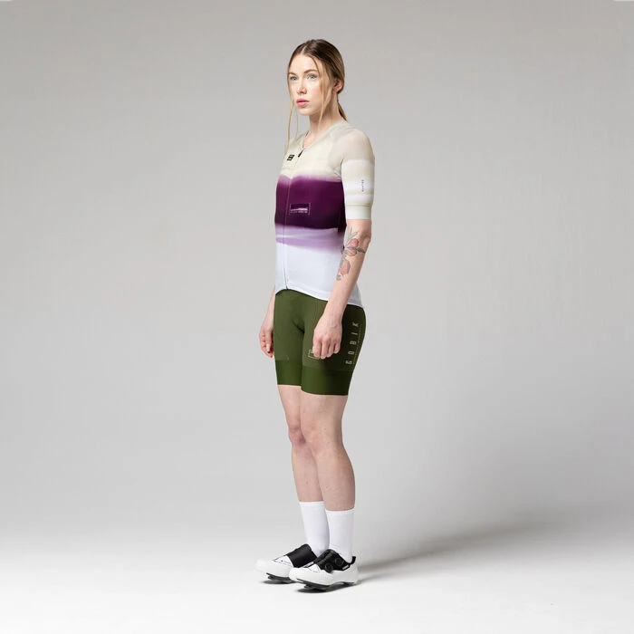 Afin d’améliorer les performances aérodynamiques, nous avons remodelé sa structure pour diriger le flux d’air vers le bas de la canopée. Nous avons agrandi le panneau avant, aminci la poche sur le bord et l’avons légèrement rétrécie en largeur ; les lamelles profilées sont situées à l’intérieur de la poche pour un look épuré et minimaliste. Il conserve sa combinaison de 4 tissus différents, ce qui en fait un vêtement techniquement complet. Conçu pour adopter une posture agressive sur le vélo et obtenir une performance aérodynamique maximale.