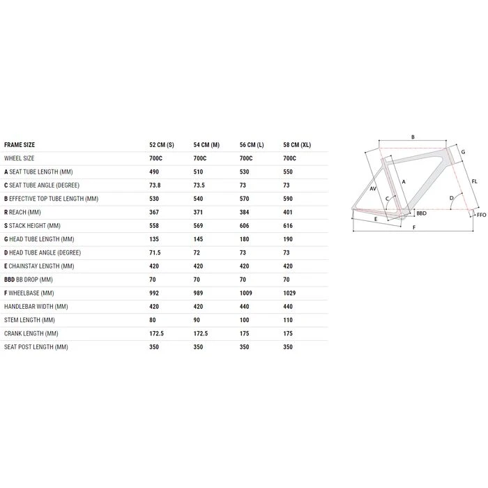 Tailles : 52 cm (S), 54 cm (M), 56 cm (L), 58 cm (XL)