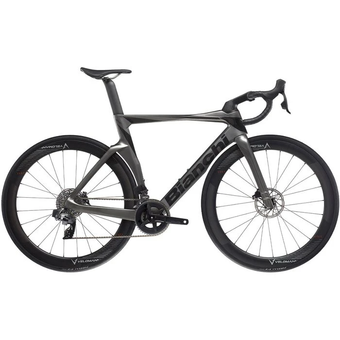 Poids7.500000 MarqueBianchi CouleurNoir FreinageDisques MatièreCarbone Profil de CadreAérodynamique GroupeSram Rival Etap AXS 2×12 DisciplineRoute