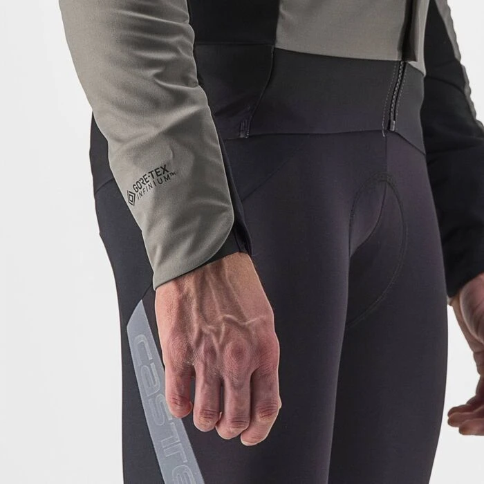 Cette veste correspond exactement à la vision que nous avons de la veste d’hiver parfaite. Après avoir dressé la liste de tout ce nous n’aimions pas dans les vestes actuelles, Castelli c’est lancés le défi de créer le meilleur modèle en prenant soin d’éliminer tout ce qui leur déplaisait chez les autres. Le premier problème à résoudre concernait la gestion de l’humidité. Même le meilleur tissu actuellement disponible offre un bon niveau de respirabilité mais n’arrive pas à drainer toute la transpiration générée lors d’une sortie haute intensité. Nous avons donc inventé une construction double épaisseur qui vous permet d’ouvrir l’épaisseur extérieure coupe-vent tout en gardant la couche isolante fermée pour laisser l’air circuler sur l’intérieur et évacuer l’humidité et éviter le contact direct avec la peau. Lors d’un col long par exemple, il suffit d’ouvrir la couche extérieure en intégralité pour permettre à l’humidité de s’échapper, et au moment de la descente, vous relevez le zip pour rester bien au sec à l’intérieur. On dirait presque de la magie tellement cela fonctionne! La nouveauté hiver 2020: un tissu avec isolation 3D, plus doux et plus chaud, qui offre un meilleur niveau de chaleur, une gestion de l’humidité accrue et une coupe plus agréable. Nous nous sommes ensuite concentrés sur les ouvertures: au cou, à la taille et surtout, aux poignets. Le col montant est conçu pour bouger avec vous, que vous soyez debout ou en position aérodynamique en train d’attaquer vos amis, tel le héros du mois de janvier. La couche stretch au niveau de la taille avec une bande de silicone plate empêche complètement le vent de rentrer, ne fait pas de paquet et ne remonte pas. Une autre nouveauté cette année: la toute nouvelle ouverture de poignet double épaisseur avec une couche interne à passer sous votre gant qui permet de bien sceller votre poignet, et une couche externe qui passe sur votre gant pour empêcher la pluie de pénétrer. Cette veste inédite résiste également parfaitement aux conditions humides grâce à son tissu GORE-TEX INFINIUM ™ WINDSTOPPER® et ses bandes de couture étanches sur les zones exposées des épaules. Les autres coutures ne sont pas directement au contact du flux d’eau et le traitement déperlant sur le tissu est suffisant pour empêcher presque toute l’humidité de pénétrer. Nous l’appelons «juste ce qu’il faut d’imperméabilité», le but ayant été de trouver l’équilibre entre imperméabilité, respirabilité et confort. Nous ne garantissons pas qu’aucune goutte n’entrera jamais dans le vêtement, mais lorsque nous faisons de longues sorties sous une bonne pluie, nous restons complètement au sec. Toutes ces caractéristiques en font un favori des athlètes professionnels et la veste performance la plus polyvalente pour l’entraînement par temps froid que nous ayons jamais créée.