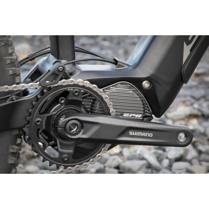 Un vélo tout suspendu doté d’un moteur Shimano EP8 de pointe, d’une batterie de 504 Wh entièrement intégrée offrant une autonomie de plus de 100 km* et d’un équipement fiable pour des sorties toute la journée. Le nouveau EP8 offre des performances optimales, un faible bruit et une grande capacité de réglage pour s’adapter au cycliste. Le réglage intelligent de la puissance vous permet de ressentir la joie du mouvement sportif, et la géométrie adaptée à nos modèles de course garantit une direction fiable sur terrain accidenté. Les débattements de 140 et 130 mm et les pneus de 2,6 pouces ajoutent de la sécurité sur les sols durs et la boue.